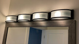 Wall Light fixture. Wall mount light fixture. 4-Light bathroom light. Vanity light fixture. Washroom light. Modern vanity light. Modern bathroom light.